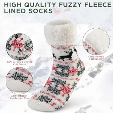 DG Hill Treehouse Knit (2 Pack) Womens Thick Knit Sherpa Fleece Lined Thermal Fuzzy Slipper Socks with Grippers