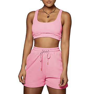 Show more Introducing the Dgebou Summer Two Piece Outfits for Women: a vibrant and stylish addition to your wardrobe that embodies both comfort and casual elegance. This delightful set features a sleeveless crop top paired with loose-fitting shorts, crafted from a high-quality blend of polyester and spandex that feels incredibly soft against your skin and allows for unrestricted movement. The breathable, moisture-wicking fabric keeps you comfortable during the warmest days, making it an ideal choice for summer outings, beach trips, or workout sessions. With its chic backless design and playful colors, including stunning pink and blue options, this outfit not only serves functional needs but also enhances your personal charm, allowing you to express your unique style effortlessly.