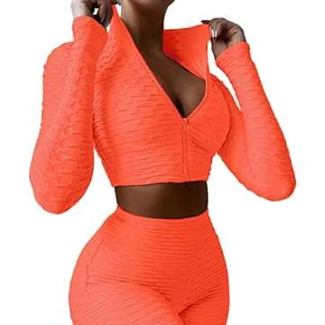 Dgebou Workout 2 Piece Outfits for Women, Sport Long Sleeve Crop Tops and High Waist Bodycon Yoga Shorts Set Tracksuit