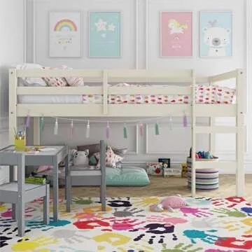 DHP Milton Twin Loft Bed, White, Traditional Small Space Junior Size, Horizontal Paneling, Sturdy Wood Construction