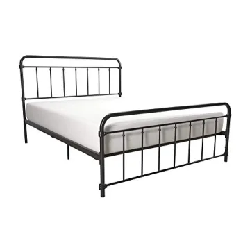 DHP Winston Metal Platform Bed with Rustic Design and Curved Edge Headboard and Footboard, Adjustable Base Height for Underbed Storage, No Box Spring Needed, Queen, Black