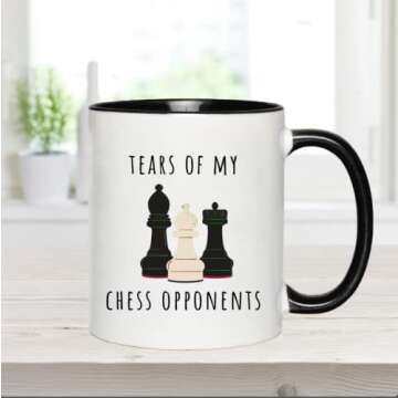 Di and Drew Tears Of My Chess Opponents Coffee Mug, Coffee Mug. Funny Gift Mugs for Man or Woman, Sarcastic Gifts for Any Occasion. Available in Black, 11oz Cup
