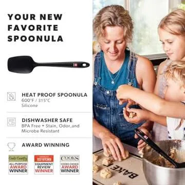 DI ORO Seamless Series Silicone Spoon Spatula - BPA Free Pro-Grade Non-Stick 600ºF Heat-Resistant Rubber Spoonula - Versatile Silicone Kitchen Scraper Utensil for Baking and Cooking (Black)