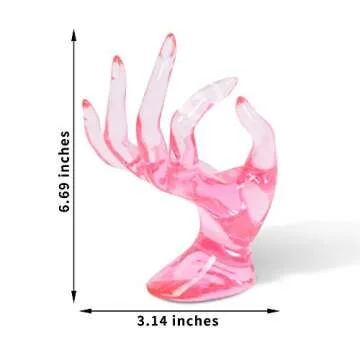 DI QIU REN Hand Form Ring Holder Jewelry Display Holder, Pink Room Decor Aesthetic Bracelet Ring Watch Stand Support Holder Preppy Jewelry Holder for Y2k Room Decor (PINK)