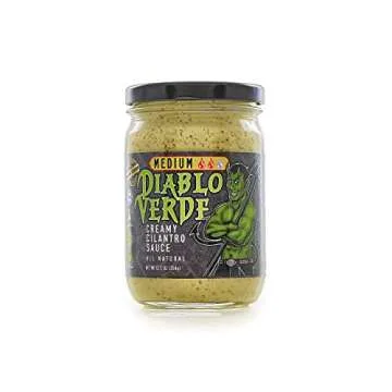 Diablo Verde Salsa, Award Winning Creamy Cilantro Sauce, Medium Heat Level, 12.5 oz bottle, Made with Cilantro, Garlic, Lime, Jalapeño Peppers, Vegetarian, Preservative-free, Soy-free, Egg-free (6-pack)