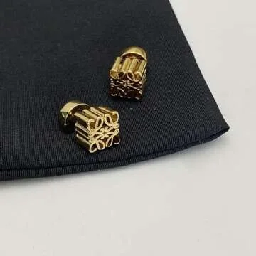 DIAMANTIO Gold Stud Earrings 18K Gold Plated Square Cubic Hole Hollow Textured Elegant for Prom Women Hypoallergenic