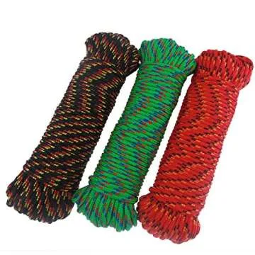 Show moreIf you're seeking a reliable and resilient rope that stands the test of time, look no further than the Diamond Braid Nylon Rope, expertly crafted to serve all your general-purpose needs. Measuring a generous 100 feet long and featuring a 3/16-inch (5mm) diameter, this high-strength utility flag line is designed with performance and durability in mind. Made from a robust polyester core wrapped in a braided soft polypropylene cover, this rope not only promises durability but also excellent shock absorption and low stretch, making it a perfect choice for a variety of applications.