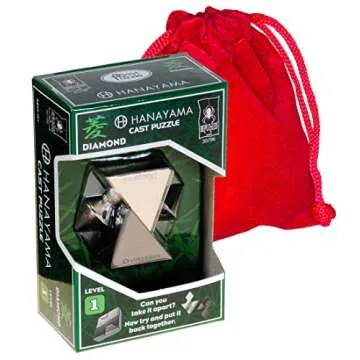 Introducing the Diamond Hanayama Brain Teaser Puzzle – a beautifully crafted, compact puzzle perfect for those seeking a delightful mental challenge. Made from high-quality materials, this two-piece brain teaser boasts intricate designs and is suitable for puzzlers aged 13 and up. As one of Hanayama's signature puzzles, the Diamond model is an ideal entry point for beginners, as its Level 1 Difficulty means it’s accessible yet engaging. The thrill of taking it apart smoothly...