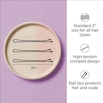 Show moreElevate your hair styling game with the Diane 2” Black Bobby Pins, a must-have accessory for women and girls who desire elegance and functionality in their hairstyles. Each bobby pin is designed for versatility, measuring at an ideal 2 inches to fit a multitude of styles, from gorgeous updos to effortlessly chic casual looks. Whether you're managing flyaways or securing stubborn baby hairs, these bobby pins are your go-to solution. Crafted from durable materials, each pin is built to withstand multiple uses while maintaining its grip, ensuring that your hair remains beautifully styled throughout the day.