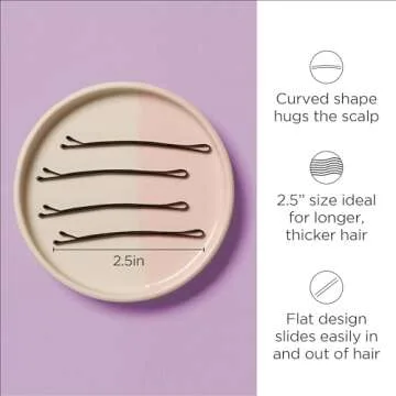 Diane 3” Curved Black Bobby Pins for Women, Girls, Salon, Hairdressing, Rollers, Long and Thick Hair, Large Flat Hair Pins with Ball Tips for Securing Updos, Flyaways, 40 Count