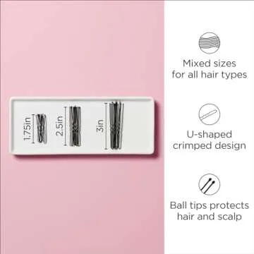 Show moreIntroducing the Diane Hair Pins, your ultimate styling ally in a bulk pack of 100 assorted sizes, designed to meet all your hair styling needs! This set includes jumbo (3 inches), large (2.5 inches), and medium/small (1.75 inches) pins, so you can tackle any hairstyle with confidence. Whether you are creating a sophisticated updo for a dance competition or a casual look for an everyday outing, these hair pins are crafted to provide exceptional hold and versatility.