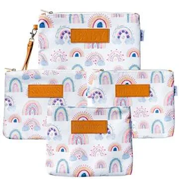Diaper Bag Organizing Pouches (Set of 4) - Rainbow Diaper Bag Organizer Pouches - Baby Diaper Clutch Bag, Wet Bag, Mama Bag, Snacks Diaper Bag Insert - Waterproof Lining - Diaper Bag Organizer Insert