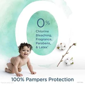 Show more Introducing the new Pampers Pure Protection diapers—your reliable partner in ensuring your baby’s comfort and hygiene. Engineered specifically for sensitive skin, Pampers has blended premium cotton and soft plant-based fibers to create a diaper that feels gentle against your baby's delicate skin. Unlike other brands, Pampers Pure Protection diapers are free from harmful elements including chlorine bleaching, fragrances, and lotions. This thoughtful composition assures parents that their little ones are safeguarded from irritants, allowing them to thrive and explore the world comfortably.