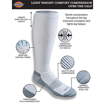 Dickies Men's Light Compression Comfort Over-The-Calf Socks, Available in M-XXL (2, 4, White (2 Pairs), Shoe Size: 6-12