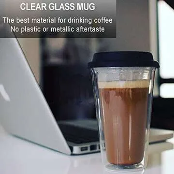 DICTEA Double Wall Glass Tumbler - 14-Oz Reusable Coffee & Tea Cup, Clear Travel Mug, On the Go, Recyclable, Microwavable, Hand Blown - Black 1