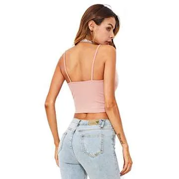 DIDK Women's Faux Fur Deco Spaghetti Strap Crop Cami Top Pink XS