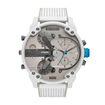 Introducing the Diesel Mr. Daddy 2.0, a statement piece that effortlessly merges aggressive design with unparalleled intricacy. This watch collection boasts a striking 57mm round stainless steel case featuring a richly detailed gray dial that commands attention while offering functionality.