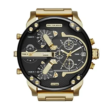 Show moreStep into a realm of bold fashion with Diesel's Mr. Daddy 2.0 watch, a striking statement piece that redefines timekeeping with style and sophistication. This oversized timepiece goes beyond mere functionality, capturing the essence of an adventurous spirit with its aggressive design and intricate details. The watch showcases a robust 57mm gold stainless steel case that houses a captivating black dial, complete with luminous hands for perfect visibility in any lighting scenario. It’s a perfect blend of audacity and elegance!