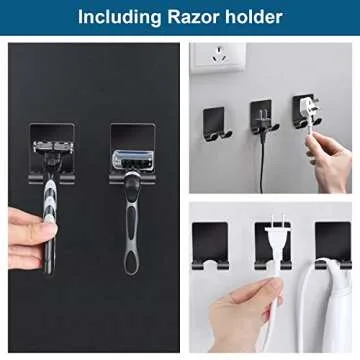 Show more Transform your bathroom and kitchen with the Diesisa Razor Holder for Shower! Crafted from premium 304 stainless steel, this versatile set includes 4 razor holders and 4 adhesive wall hooks, perfect for all your organization needs. What sets our holders apart is the added thickness of 1.5mm—a step above the competition's standard 1mm hooks. This increased durability ensures that you receive both strong performance and a sleek aesthetic that blends seamlessly into any decor.