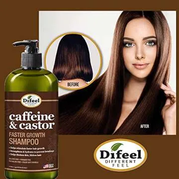Difeel Caffeine & Castor Faster Growth Shampoo 33.8 oz., Made with Castor Oil for Hair Growth, Sulfate Free Shampoo