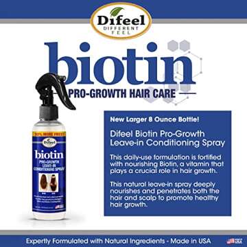 Show moreDiscover the transformative power of the Difeel Pro-Growth Biotin Leave-In Conditioning Treatment in this 8 oz. large bottle. A game-changer in your hair care routine, this innovative leave-in conditioner is designed to nourish and revitalize your hair while promoting natural growth and health. Infused with Biotin, a vital water-soluble vitamin from the B family, this treatment helps convert essential nutrients into energy for your body and hair. With its lightweight and non-greasy formula, it won’t weigh your hair down, making it an optimal choice for daily use. Users rave about how it leaves hair feeling soft, manageable, and revitalized, with a refreshing scent that keeps your locks smelling clean throughout the day.