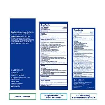 Show moreIntroducing the Differin Skin Care Set, a meticulously crafted regimen designed specifically for those battle-worn by the persistent challenges of acne-prone and sensitive skin. This comprehensive three-step set includes the Differin Gentle Cleanser, Differin Gel, and the Differin Oil Absorbing Moisturizer with SPF 30. Each product is formulated with a focus on not just treating acne, but also nurturing your skin. The gentle cleanser effectively removes dirt, makeup, and impurities without stripping away essential natural oils, ensuring your skin remains hydrated and balanced. The revolutionary Gel leverages 0.1% adapalene, a prescription-strength retinoid, to target deep-set breakouts, preventing future flare-ups while promoting a clearer complexion. To complete your routine, the lightweight oil-absorbing moisturizer provides a protective barrier against harmful UV rays, making it an ideal daily companion for all skin types.