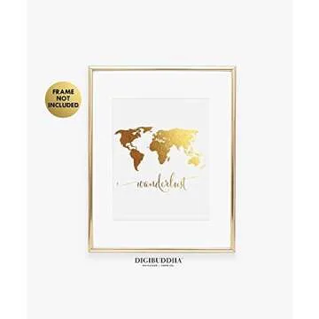 Show moreDiscover the perfect balance of elegance and wanderlust with the DIGIBUDDHA Wanderlust World Map Gold Foil Art Print. Measuring 8x10 inches (A4), this stunning print captures the adventurous spirit in a magnificent gold foil design, making it an eye-catching piece for any wall. Created for the modern traveler, it seamlessly blends contemporary style with the timeless beauty of our planet, inspiring dreams of global adventures and exploration.