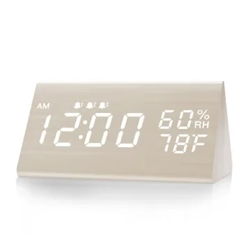 Stylish Wooden Digital Alarm Clock with LED Display, 3 Alarms, Temp & Humidity Sensor
