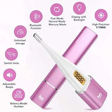 Digital Basal Thermometer, High-Precision Oral Thermometer with Backlit & LCD, 1/100th Degree and Memory Recall Thermometer with APP(iOS & Android) for Nature Family Planning and Fever, Purple