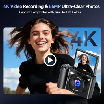 Show more Unleash Your Creativity! The Digital Camera 4K for Photography Vlogging is the perfect companion for budding photographers and vlogging enthusiasts alike. With an impressive 56MP photo resolution and stunning 4K video capabilities, this compact camera is designed to capture every moment in crystal-clear detail. Whether you’re recording memories of a family gathering, creating fun TikTok videos, or documenting your daily adventures, its lightweight and portable design allows you to take it anywhere. The intuitive mode dial makes switching between settings quick and easy, ensuring you can focus on what you love—creating!