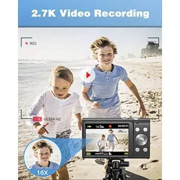 Digital Camera Auto Focus 2.7K 48MP Digital Point and Shoot Camera with 32GB Memory Card,16X Zoom, Time Lapse Vlogging Camera Digital Cameras for 8-15 Years Kids Teenagers Students Boys Girls Black