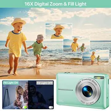 Digital Camera, Kids Camera with 32GB Card FHD 1080P 44MP Vlogging Camera with LCD Screen 16X Zoom Compact Portable Mini Rechargeable Camera Gifts for Students Teens Adults Girls Boys-Green