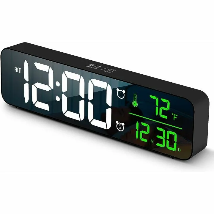 Boasting an Automatic Brightness Dimmer, this smart alarm clock adjusts its brightness based on the time of day, creating a comfortable viewing experience at any hour. The built-in memory function ensures that even in the event of a power outage, your time data remains intact, eliminating the hassle of resetting. Furthermore, with the capability to set two separate alarms, this clock caters to diverse schedules, making it ideal for heavy sleepers or families with varying routines.