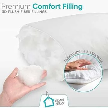 Digital Decor Set of 2 Premium Gold Hotel Pillows for Sleeping- Made in USA - Hypoallergenic Standard Size Pillows with Down Alternative Fiber Fill for Side & Back Sleepers - Plus 2 Free Pillowcases