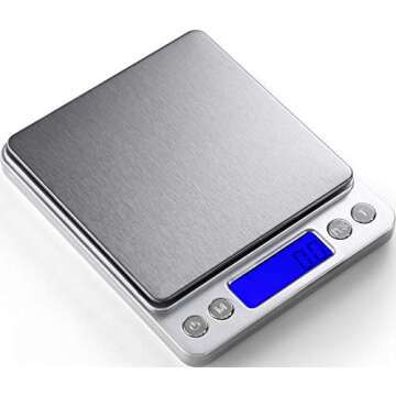 Digital Kitchen Scale 3000g / 0.1g ; Mini Pocket Jewelry Scale, Food Scale for Kitchen, 2 Trays, 6 Units, Auto Off, Tare, PCS Function, Stainless Steel, Batteries Included…