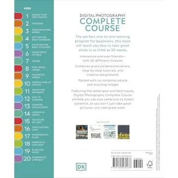 Why You will Love This Product?With the Digital Photography Complete Course, you will create unforgettable memories in a visually stunning manner. This book enhances your photography skills while building your confidence behind the camera. Watching your progress unfold week by week is both rewarding and motivating. The hands-on exercises and beautiful photography ignite passion and creativity, allowing you to see the world through a more artistic lens.