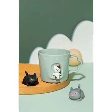 DIHOclub Cat Ceramic Cup Window Animals Mug Cute Cartoon Handmade Figurine Mugs,Holiday and Birthday Gift for Daughter,Son,Kids,9 OZ (Blue)