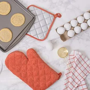 DII Basic Terry Collection 100% Cotton Quilted, Oven Mitt, Spice, 2 Piece