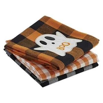 DII Happy Halloween Dishtowel Collection Embellished Cotton Kitchen Hand Towel Set, 18x28, Spooky Farmhouse Buffalo Check, 3 Count