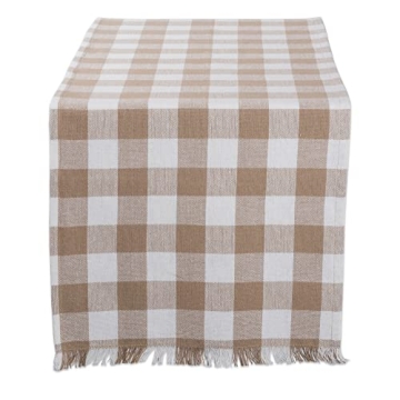 DII Heavyweight Fringed Check Tabletop Collection, Table Runner, 14x72, Stone Brown