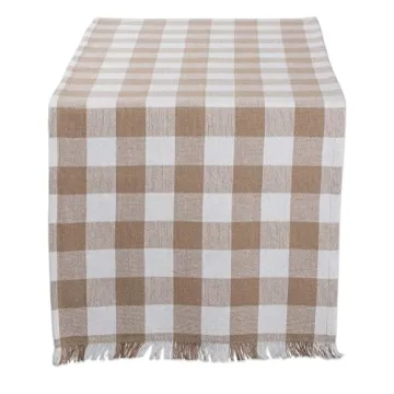 Show moreIntroducing the DII Heavyweight Fringed Check Tabletop Collection, a stunning table runner that brings elegance and functionality to your dining table. Measuring 14x72 inches, this runner is perfectly sized for tables that comfortably accommodate 6-8 people, making it ideal for family gatherings and events. Crafted from heavyweight cotton, its durable yet stylish design resists scratches and spills, ensuring your dining space remains immaculate throughout use. The charming stone brown color and trendy check pattern beautifully complement modern farmhouse aesthetics, blending seamlessly with your décor.