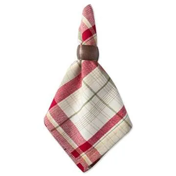 DII Orchard Plaid Collection Linen Tabletop Essentials, Napkin Set, 20x20, Taupe/Red, 6 Piece