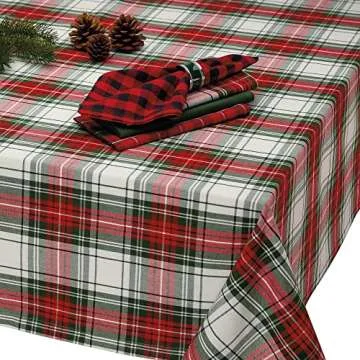 DII Tartan Plaid Collection Holiday Dining Table & Kitchen Décor, Square Christmas Tablecloth, 52x52, Red, Green & White