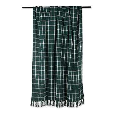DII Transitional Checked Plaid Woven Throw Blanket - 50x60, Dark Green