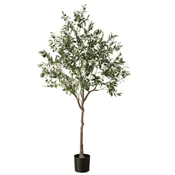 Show moreTransform your living space with the exquisite DIIGER 6.4FT Artificial Olive Tree. This stunning piece stands tall at **6.4 feet**, making it an eye-catching addition to any room in your home or office. Crafted with meticulous attention to detail, each olive leaf and fruit perfectly mimics the genuine architecture of real olive trees, ensuring a realistic and appealing look. The black plastic pot measures **6 inches high and 5 inches wide**, providing a sturdy base that complements the tree’s height and elegance. Whether you're looking to enrich your decor or add an element of nature indoors, this artificial olive tree serves both beauty and functionality, offering a highly simulated bark texture and clear foliage that astounds at first glance.