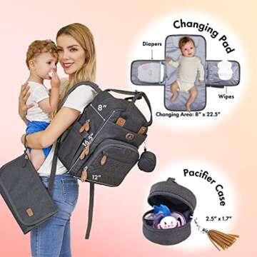Specially designed for hands-free convenience, the extra wide opening allows you to locate what you need quickly, while the smooth SBS dual zippers enable easy access even with one hand. The removable pacifier pod is a practical touch that keeps your pacifiers clean and within reach, ready for every need. Whether you're going for a casual walk, a trip to the park, or a day out shopping, this stylish diaper bag is the perfect number one companion.