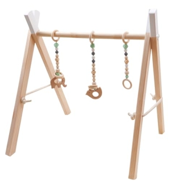 DILIMI Wooden Baby Gym with 3 Baby Sensory Toys - Stylish Foldable Play Activity Frame