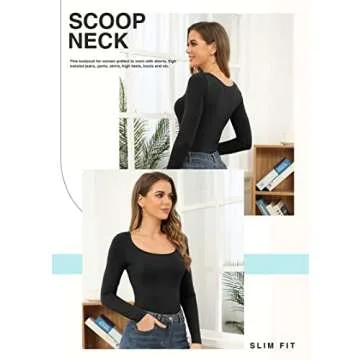 DILIUXING Scoop Neck Long Sleeve Slim Fit Comfortable Casual Sexy Bodysuit Jumpsuits, Black, Large