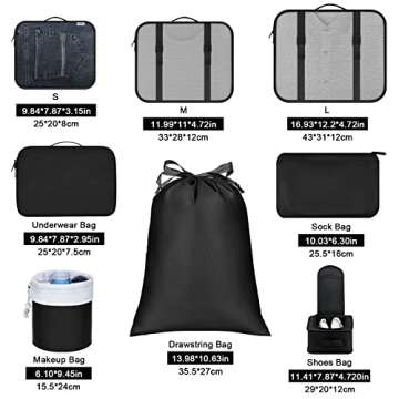 DIMJ Packing Cubes Set - 8 Durable Lightweight Travel Organizers with Makeup Bag