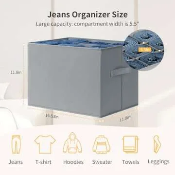 DIMJ Wardrobe Clothes Organizer, Jean Pants Towel Organizers for Closet, 9 Cell Stackable Wardrobe Shelf Dividers, Foldable Storage Bins for Clothes Sweater T-shirts Legging, 2 Pcs Grey